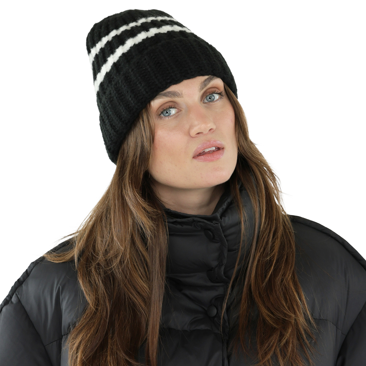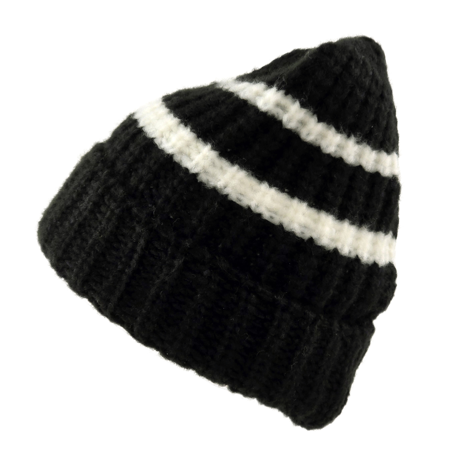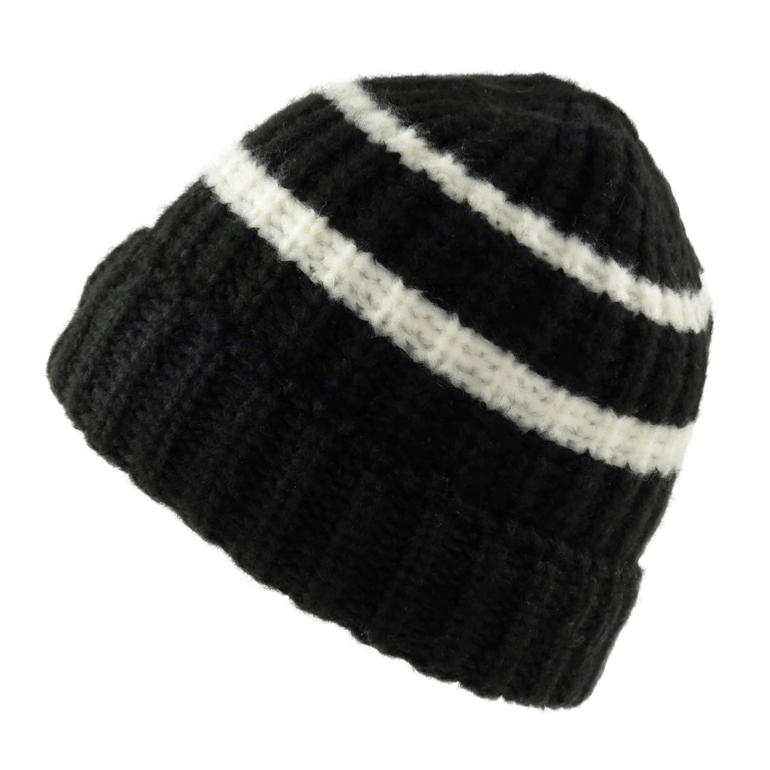 Bonnet - Gårda Les Deux Alpes Striped Merino Mix Beanie (noir/blanc)