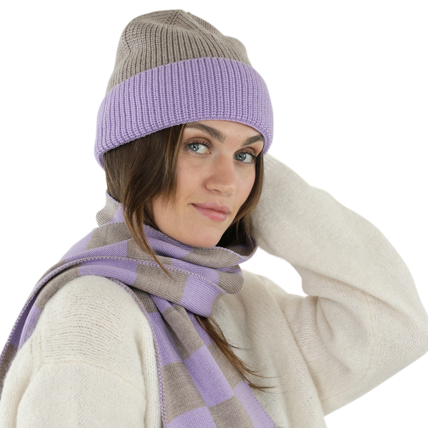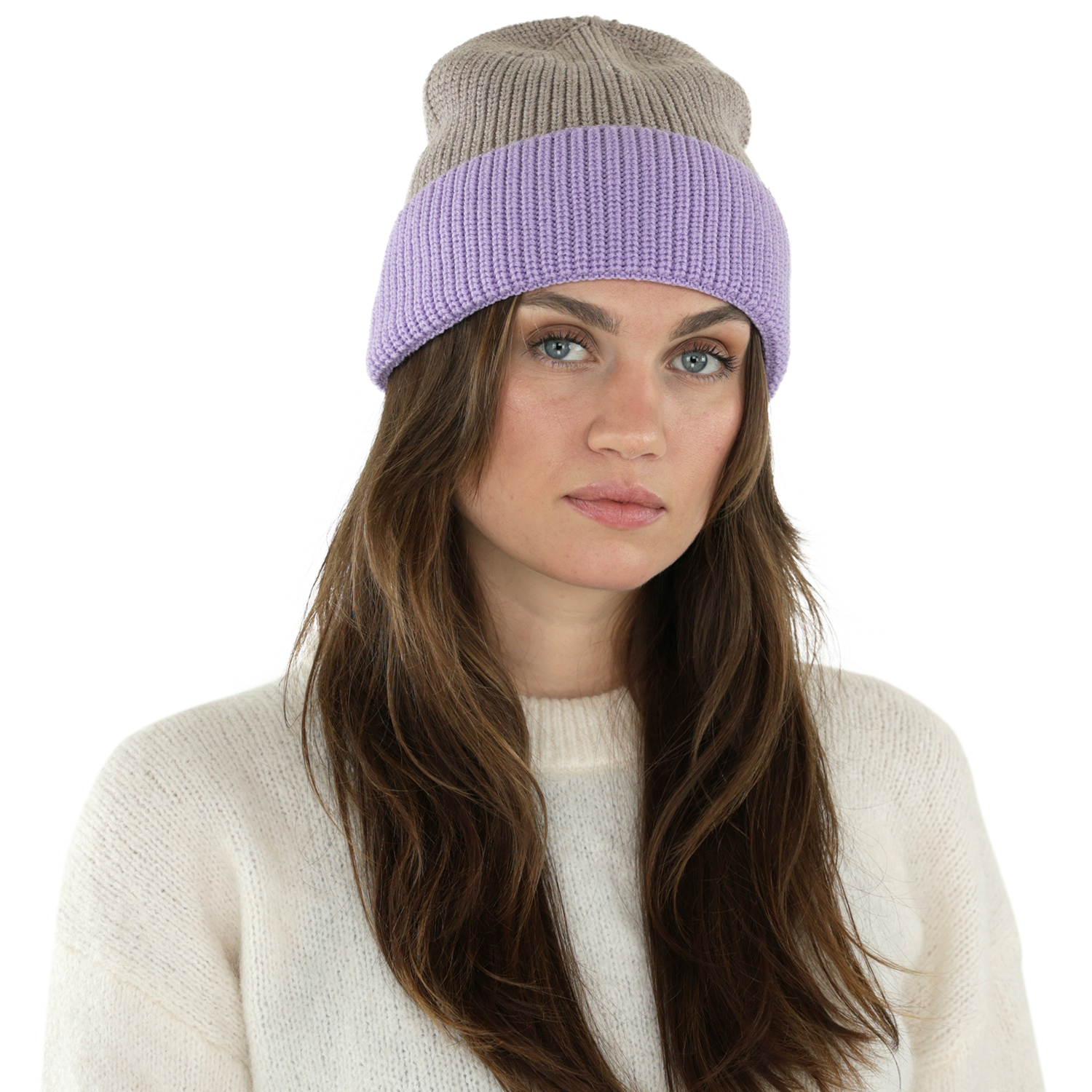 Bonnet - Gårda St. Moritz Merino Wool Beanie (violet/beige)