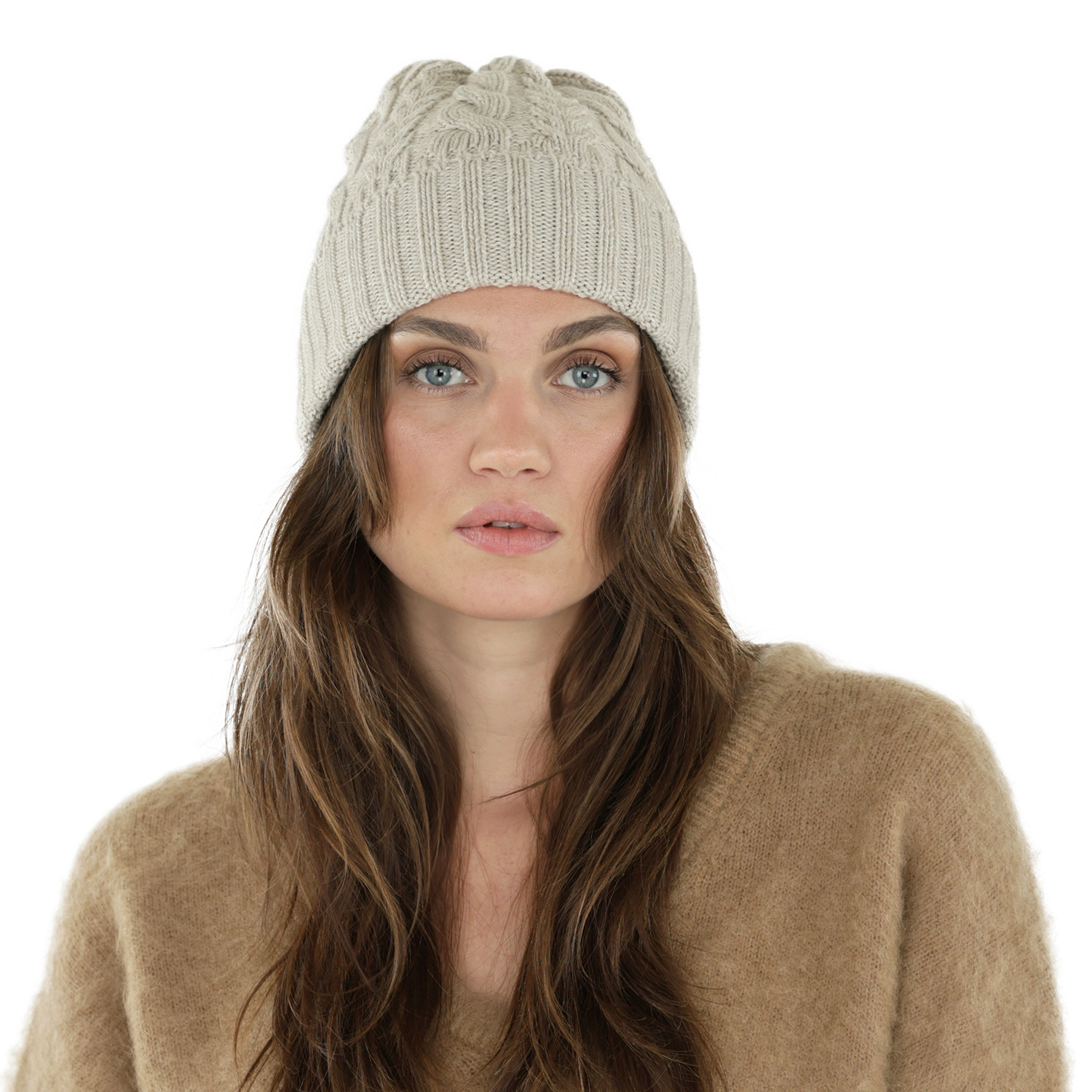 Bonnet - Gårda Villars Cable Knit Wool Mix Beanie (beige)