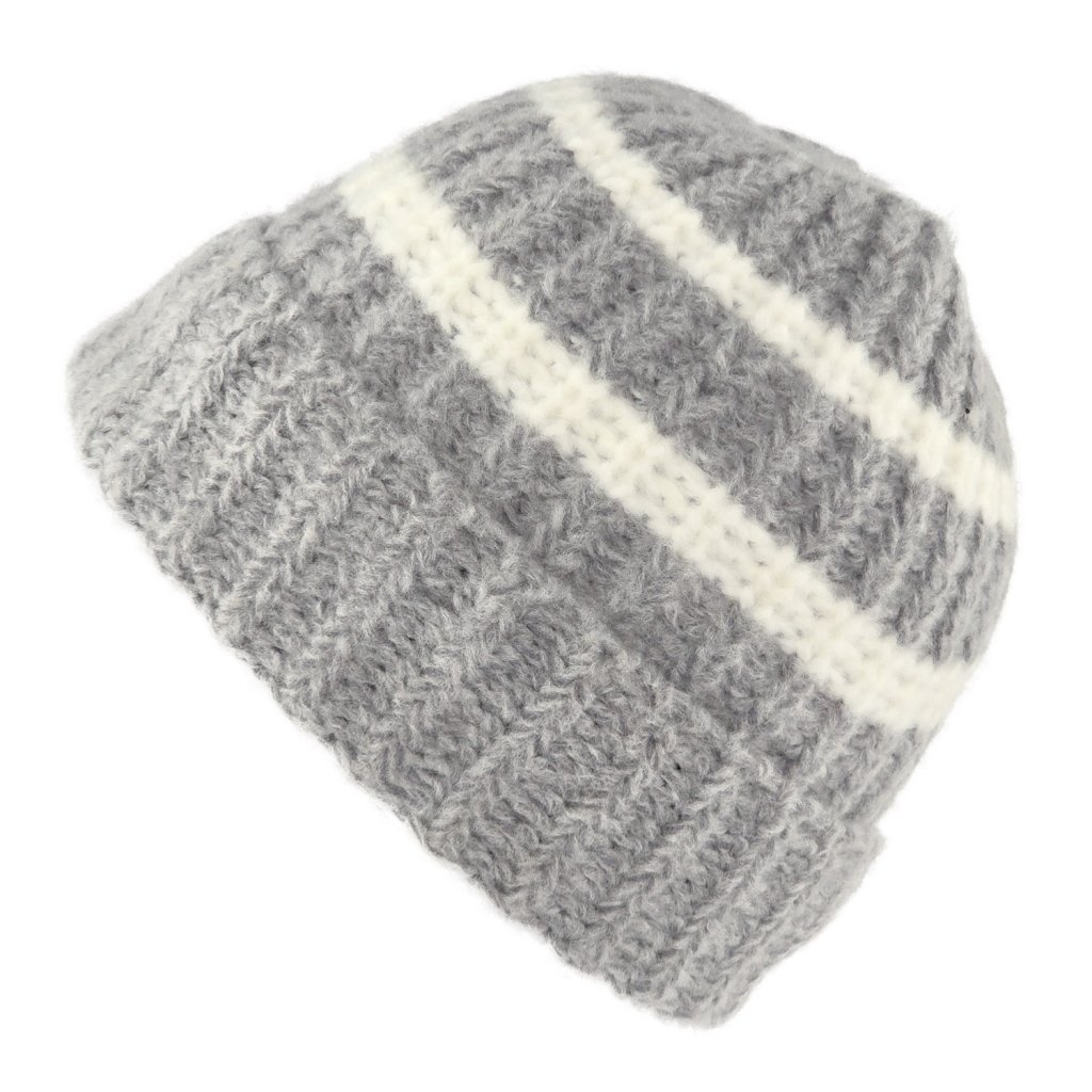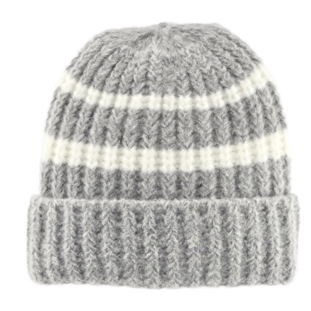 Bonnet - Gårda Les Deux Alpes Striped Merino Mix Beanie (gris/blanc)