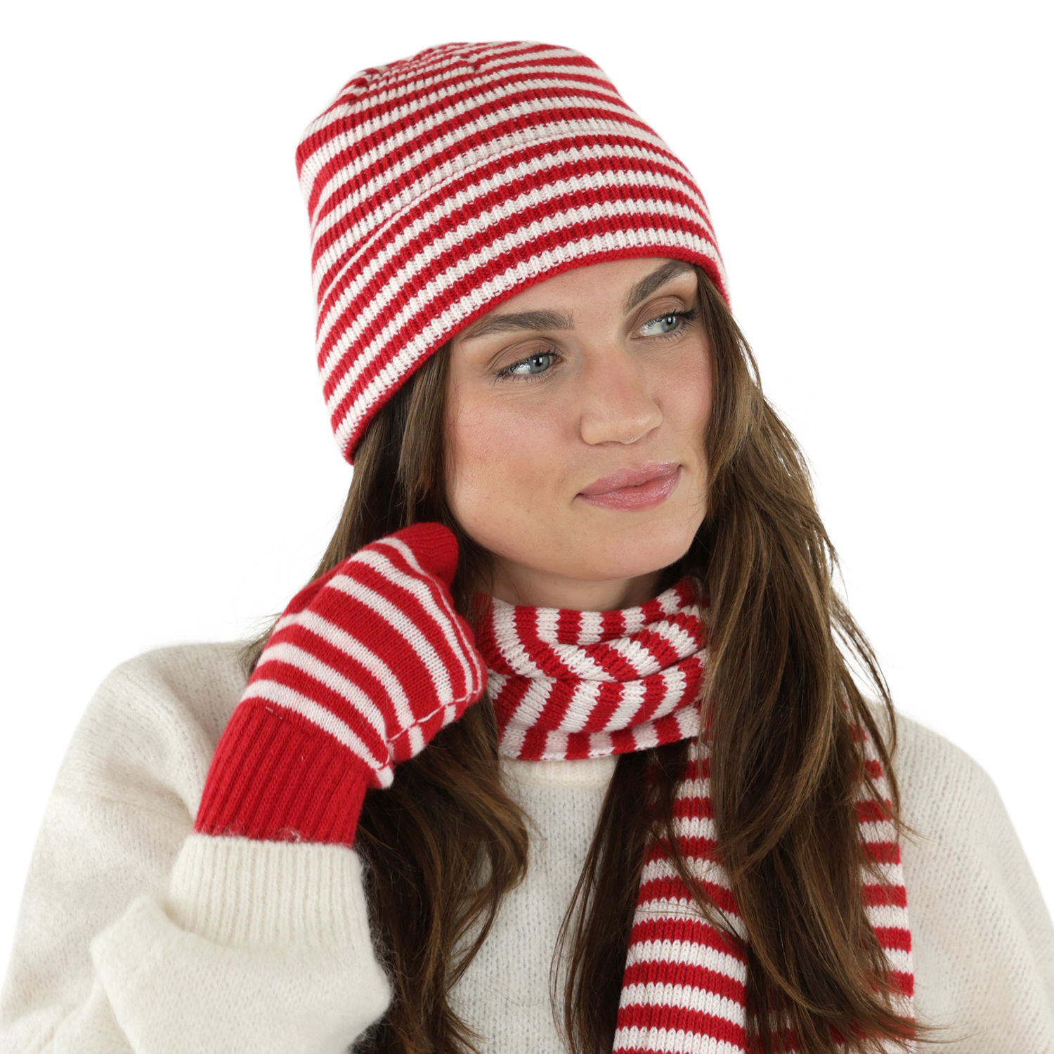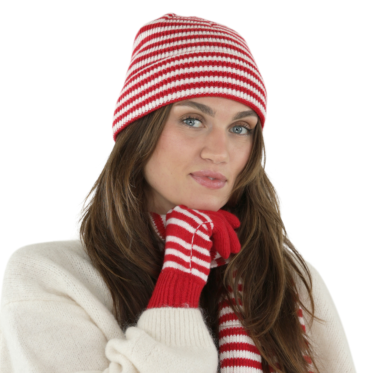 Gants - Gårda Cavalese Knitted Wool Mix Gloves (rouge/blanc)
